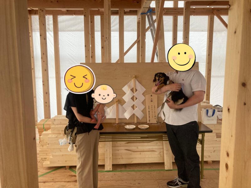 9月に行われた上棟式では、愛らしいお子様とわんちゃんもご参加いただきました。