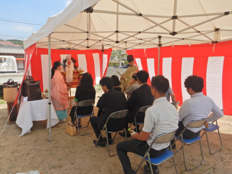 7月に執り行った地鎮祭では、皆様と、工事の無事・安全を心を込めて祈願いたしました。